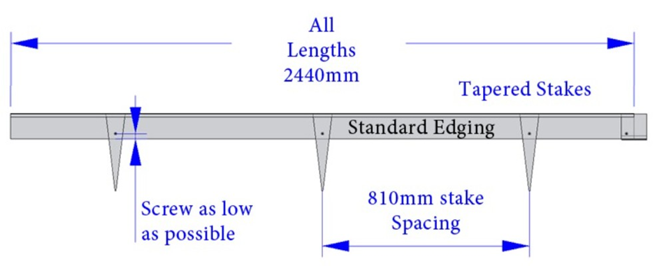 The first option is the tapered stake. It’s ideal for edging profiles up to 185mm high, and works great at strengthening and anchoring most standard applications.